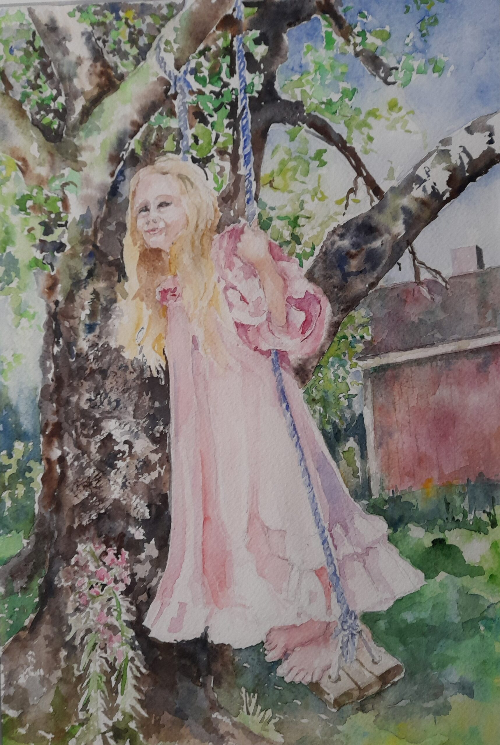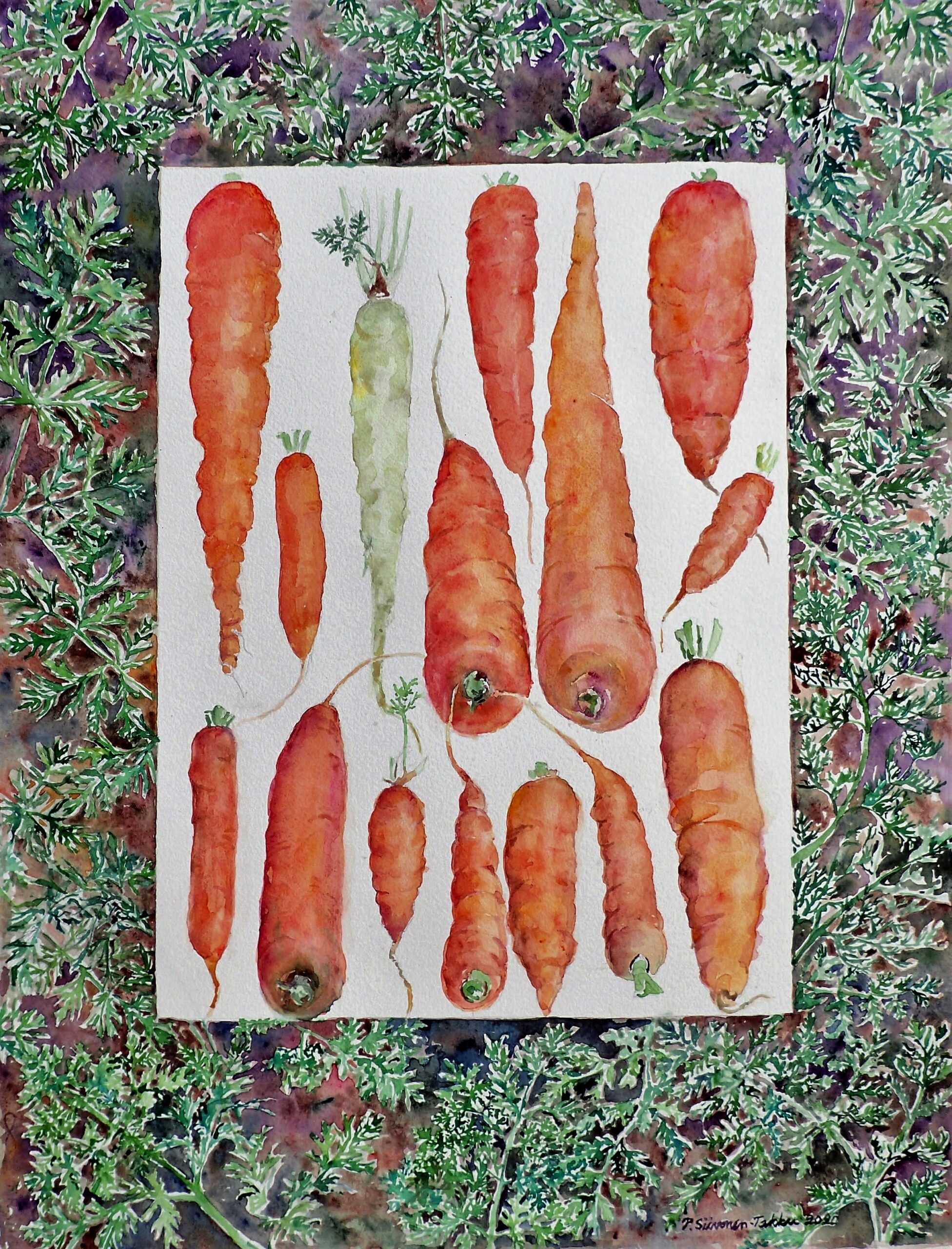 Akvarelli on minulle läheisintä. Olen maalannut asetelmia käyttäen mitä kaapista löytyy, on se sitten suuhun pantavaa tai keittiö- tarvikkeita. Rakastan kukkia ja maaseudulla asumista. Voin mennä ulos maalausvälineiden kanssa ja nauttia akvarelli-työskentelystä.
