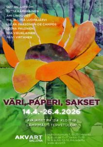 Leena Paasonen-De Camposin ja hänen kokoamansa taiteilijaryhmän näyttelyn avajaiset järjestetään ma 13.4. klo 17-19. Galleria on maanantaina auki vain avajaisten ajan.
