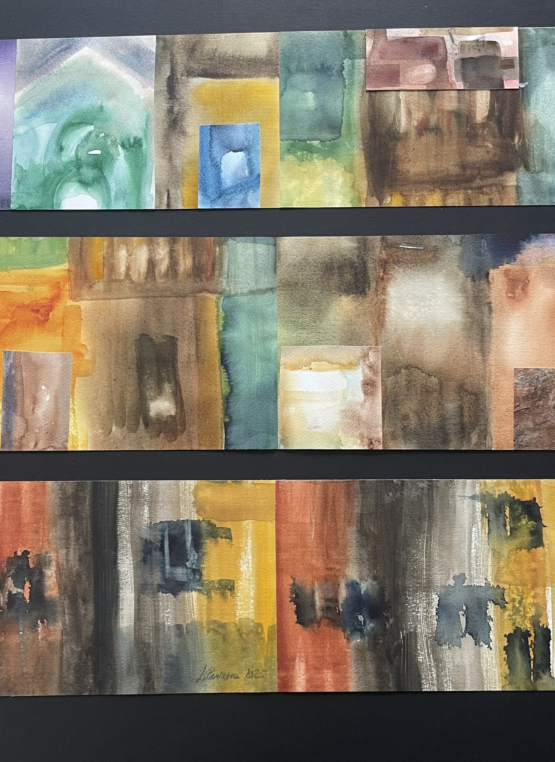 Leena Paasonen- de Campos on koonnut taiteilijaryhmän läheltä ja kaukaa sekä tuonut kutsussaan ilmi, että jokainen taiteilija tuo esille oman kokeilevan ja vapaan näkemyksensä akvarellista ja erityisesti akvarellikollaasista. Eri elämänvaiheista ja -tilanteista tutut maalariystävät edustavat sekä taiteellisesti erilaisia tyylisuuntia että myös eri ikäryhmiä laajalla skaalalla.